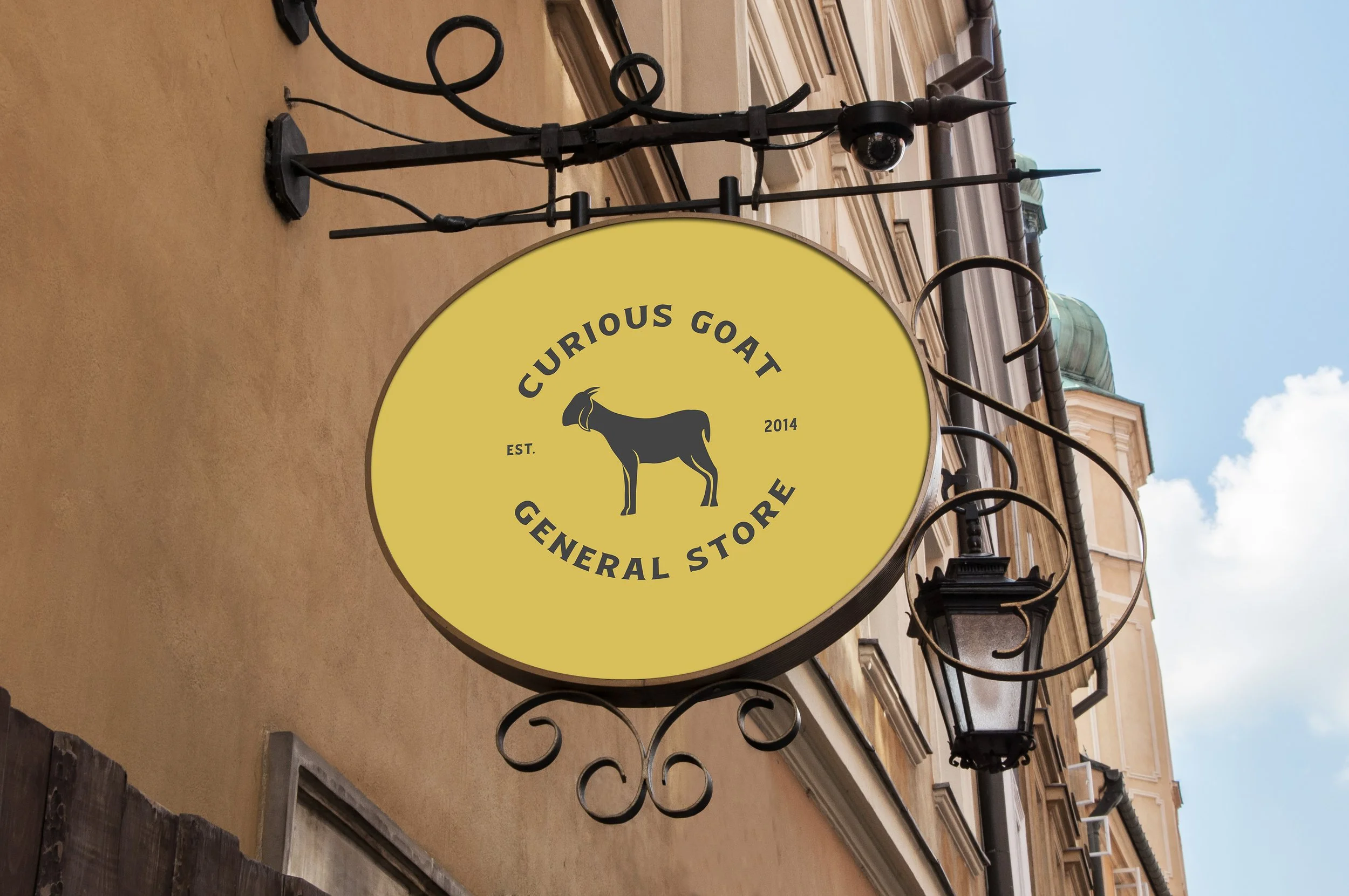 Task: Redesign the logo for Curious Goat General Store, a farm stand, honey farm, and permaculture business. The client envisioned a vintage aesthetic influenced by the 1960s and 70s, capturing a sense of nostalgia while maintaining a fresh, approachable feel.